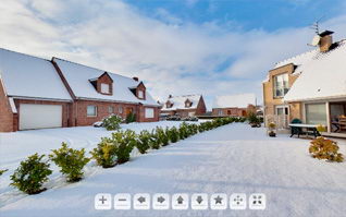 Réalisation d'un essai de panoramique 360° dans un jardin enneigé. Ce projet "test" nous a permis de mettre en œuvre une technique de photographies 360° adaptée aux environnements sans laisser de traces de notre passage.